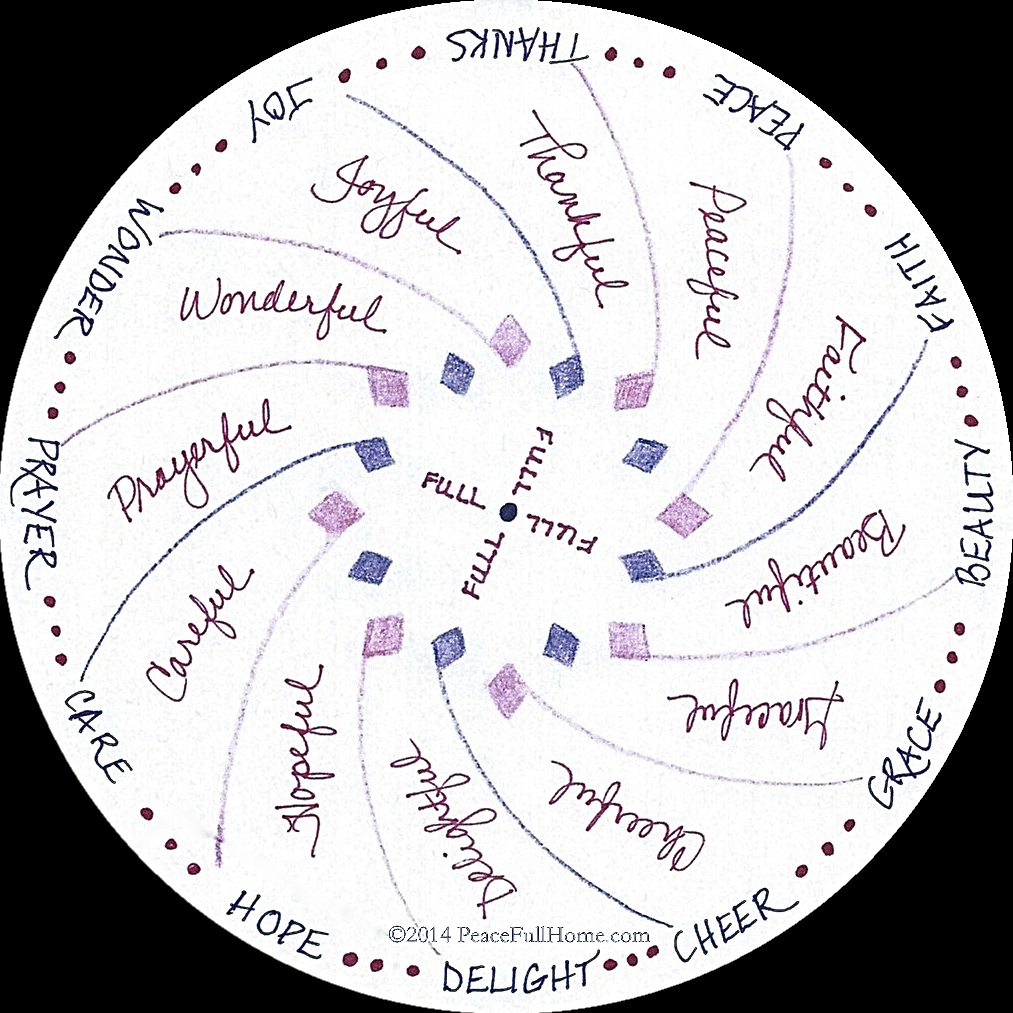 When I sketched out this little mandala, I wrote the words on the outside circle as they came to me. It wasn’t until after I was finished that I noticed that the words directly across from each other made sense together. Pretty cool, right?