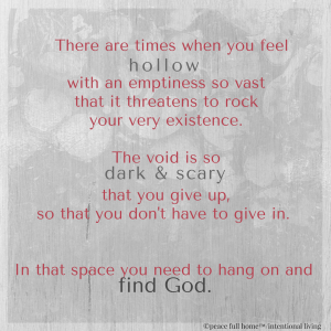 And, there are times when you feel hollow with an emptiness so vast, and a void so dark that you give up, so that you don’t have to give in.