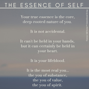 If you no longer have any idea of what your essence is, it may be time for some soul-searching, or conversations with those who love you, or reaching out to someone like me, who truly wants you to live a peace-filled/intentional life.