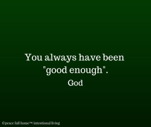 In order to create peace full homes, we need to create peace full lives—We need to create peace full living. That requires attention to how we treat, respect and value others and ourselves. No matter which side you currently stand on the “good enough” equation, always remember that we all have value.