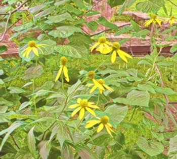 I was told that these perennials are “mock sunflowers”. They grow over 8′ tall, won’t last a day if you cut them and have no problem taking (and falling) over other plants and shrubs around them. They’re content with just being themselves. No fanfare, no haughty arrangements, just themselves. Pretty cool, right?