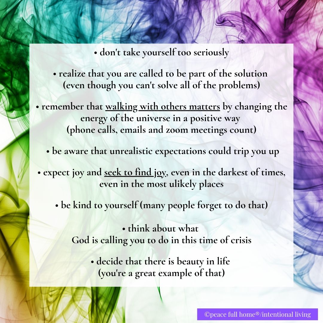• remember that walking with others matters; it changing the energy of the universe in a positive way (phone calls, emails and zoom meetings count)