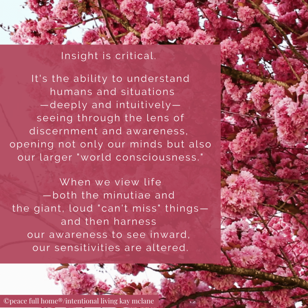 Insight is critical. It’s the ability to understand humans and situations—deeply and intuitively—seeing through the lens of discernment and awareness, opening not only our minds but also our larger world consciousness.