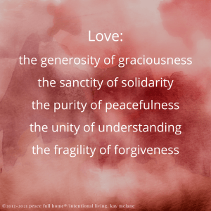 Love can be compassionate or passionate and guide you to generosity beyond what you would have ever dreamed. It includes benevolence, kindness, empathy; it can be unconditional, tender, pious, or infatuating.