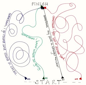 But, it’s often those serendipitous journeys on Path 3 and Path 4 that teach me the most. The starts, the stops, the detours along the way make the travel more interesting—even when my first emotion is frustration, and I think (or yell out loud), “For the love of God, what is going on?”