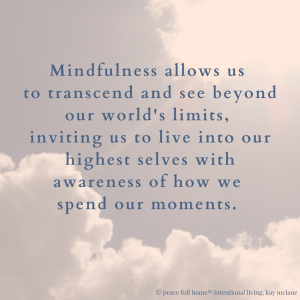 So, how do we make peace with what will, one day, be our transition? Mindfulness allows us to transcend and see beyond our world’s limits regarding death, inviting us to live into our highest selves with awareness—but not guilt—of how we spend our moments.