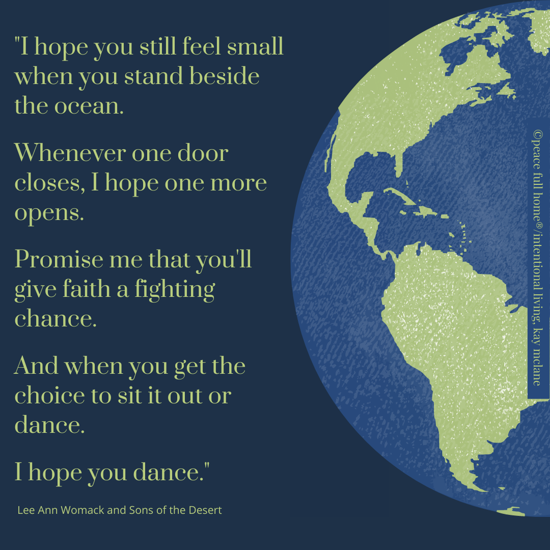 So, I offer these words from a beautiful song by Lee Ann Womack and Sons of the Desert. They are not a panacea, of course, and they always move me to tears, but they offer hope.