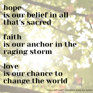 When I started “Peace Full Home” many years ago, it wasn’t because I was brainstorming a new writing venture. It came to me (or, more accurately, was offered to me) as I sat on the deck on a beautiful sun-blessed morning. It was a gift given freely, not requested.