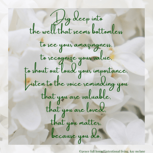What is your truth? When you’re broken, what words mend you? When you are alone, in the quiet, in your quiet can you see the truth of who you are: brilliant and sensitive, loved and necessary. Because (and you know this at your core), you are all that and so much more.